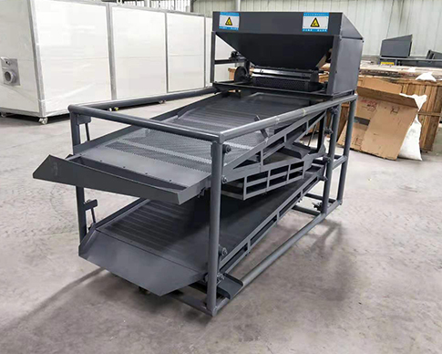 先将机器放置水平位置,接通电源,启动工作开关,确保电机顺时针运转后,以示该机进入正确工作状态。然后把被筛选的物料倒入进料斗,根据物料颗粒大小正确调整料斗底部的塞板使物料均匀进入上层筛网中;同时也使筛子上部的圆筒风机向筛网出料端正确送风;风机下端的引风口也可直接连接布袋接纳谷物中的轻杂废料。 振动筛的下部有四个轴承分别固定在机架上的槽钢内做直线往复运动;其中筛子的上层粗筛是清理物料中的大颗粒杂质,而下层细筛是清理物料中小颗粒杂质
